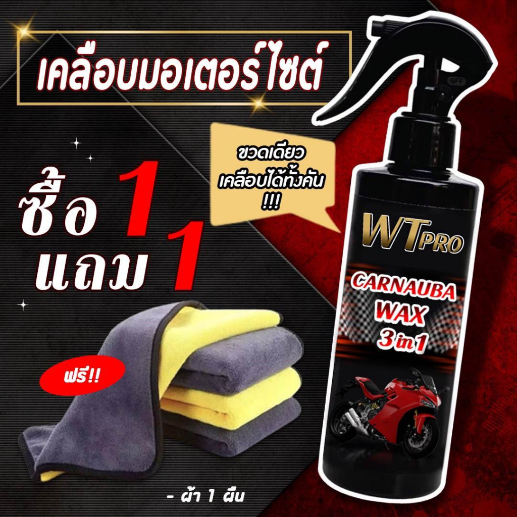 เคลือบเงามอเตอไซด์ น้ำยา2 ขวด แถมผ้า 1 ผืน น้ำยาเช็ดรถ