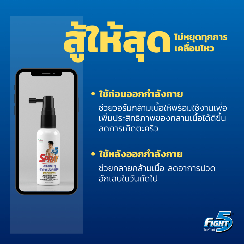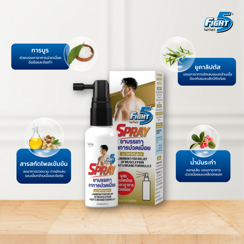 ทาบรรเทาอาการปวดเมื่อย ตรา ไฟท์ไฟว์ Fightfive รูปแบบสเปรย์ 1 ขวด