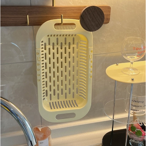 ตะแกรงล้างผัก ผลไม้ ตะแกรงอเนกประสงค์ ตะแกรงพลาสติก แบบยืดหดได้ มีรูระบายน้ำ