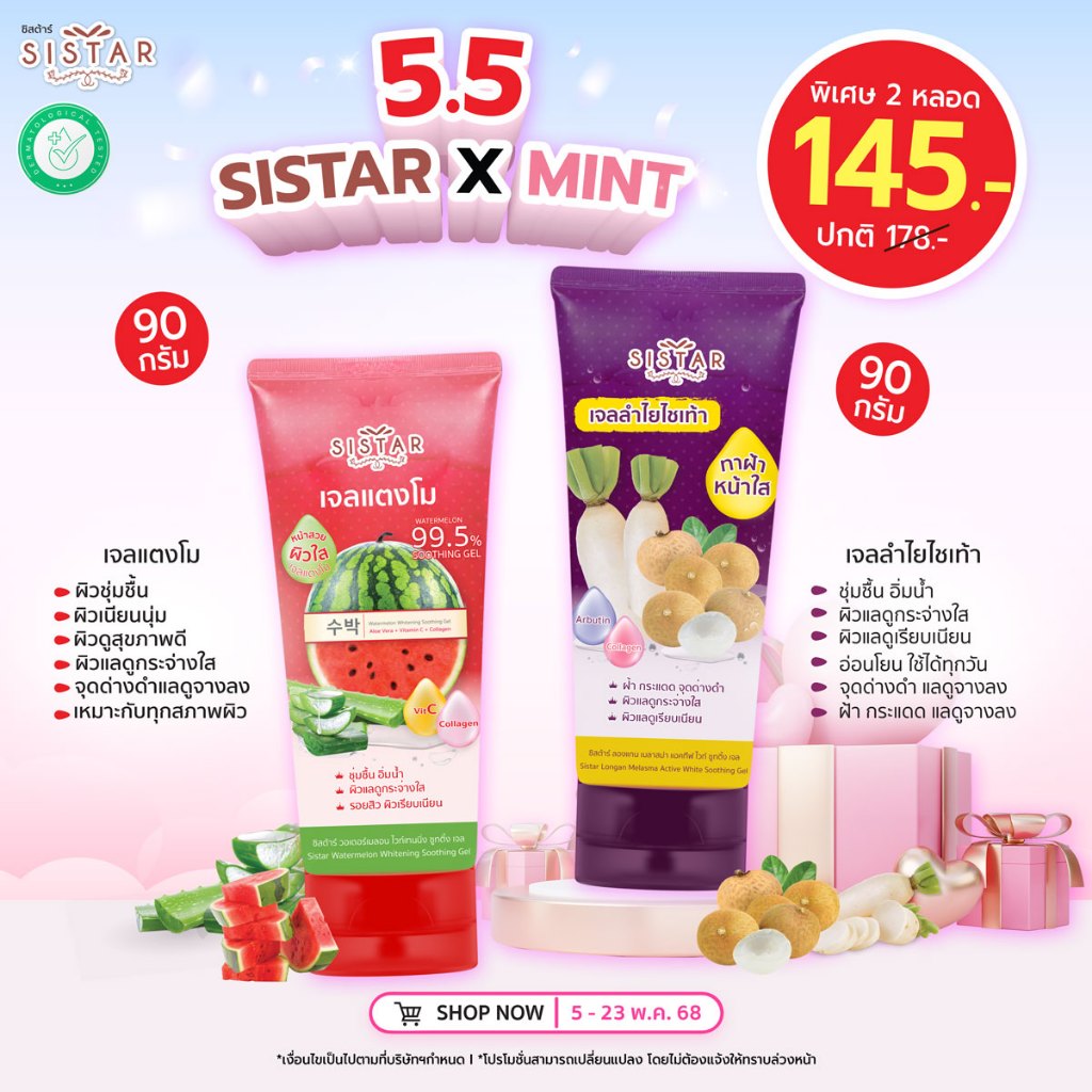 Sistar Official เจลแตงโม / เจลลำไยไชเท้า แบบหลอด 90 กรัม SST0703 / SST1903