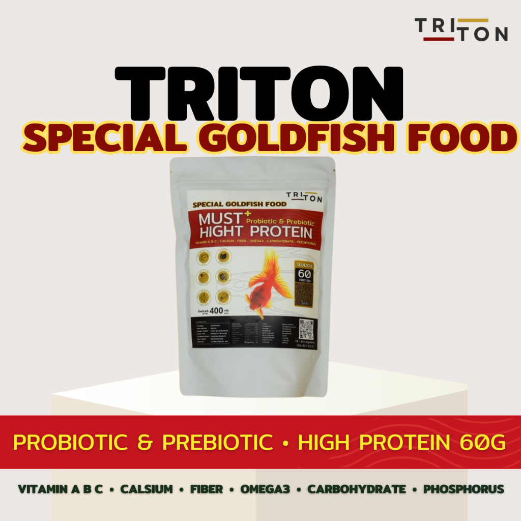 Triton Goldfish Food อาหารปลาทอง ไทรทัน สูตรพิเศษ โปรตีนสูง 60% (เม็ดจม)