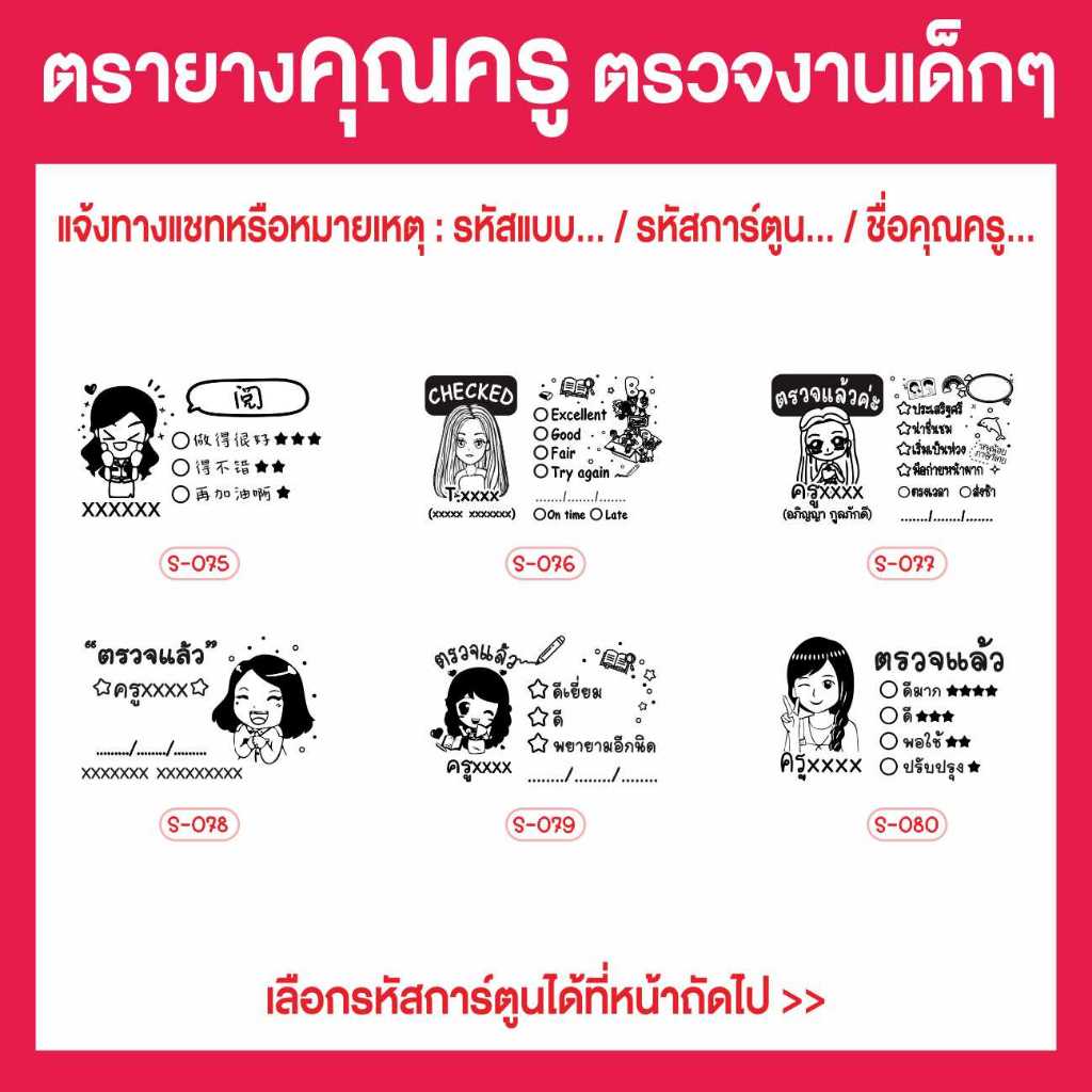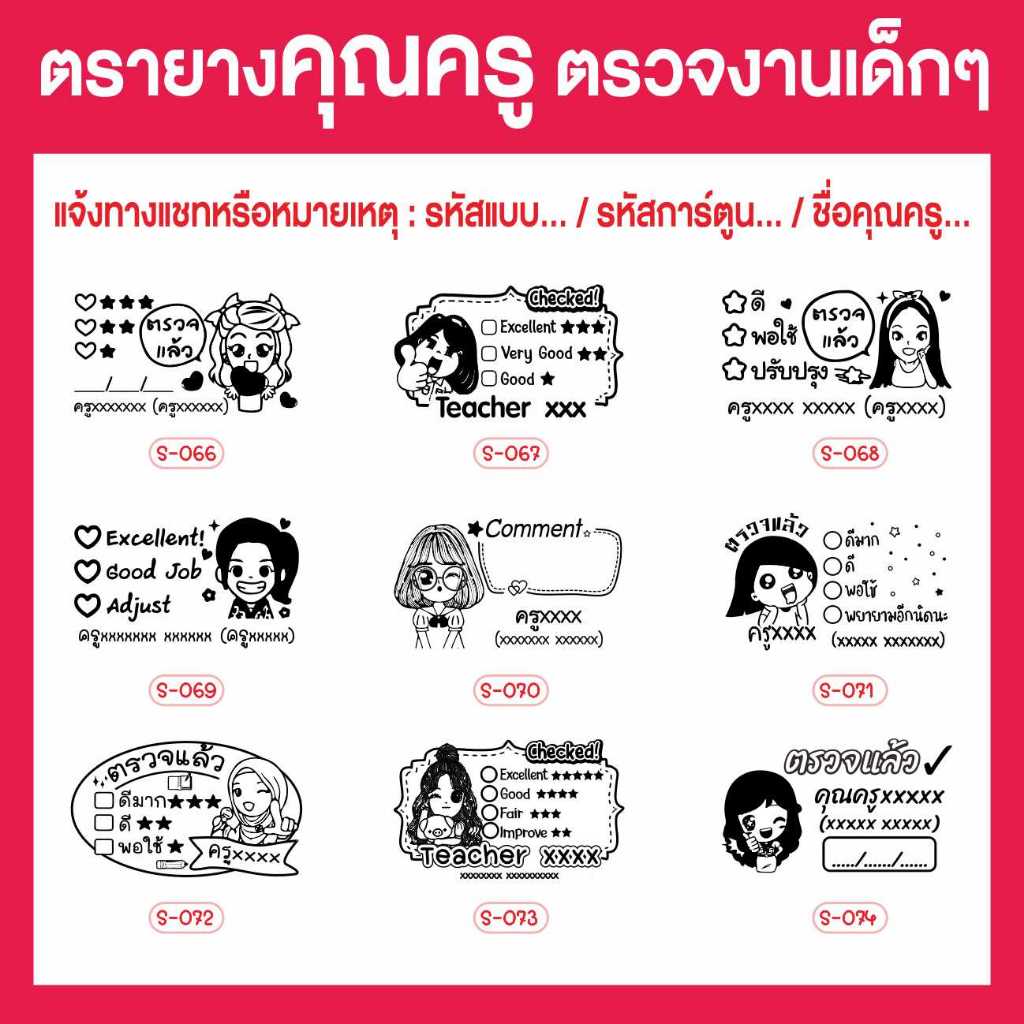 (3x5 cm.) ตรายาง ตรายางตรวจงาน ตรายางคุณครู สามารถสั่งทำตามแบบได้ 3x5 cm. มีทั้งด้ามธรรมดา/หมึกในตัว