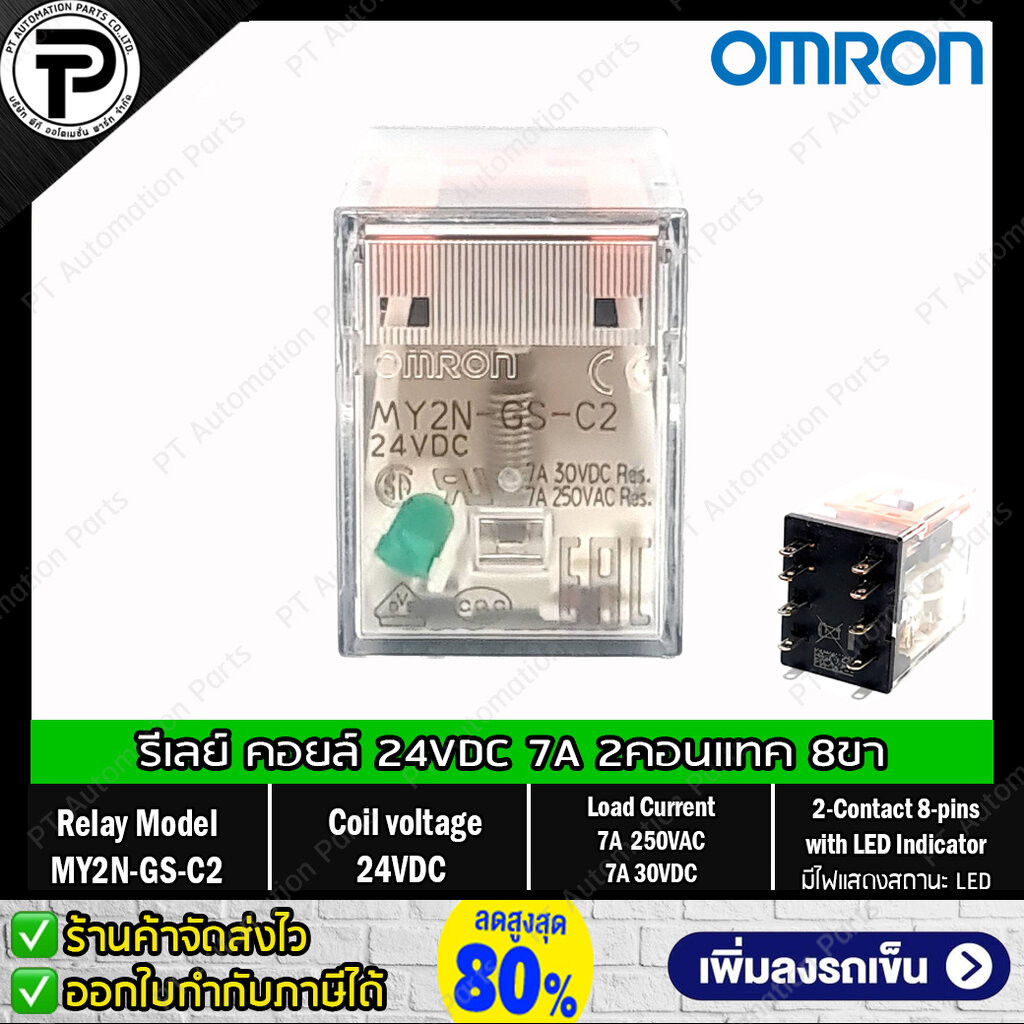 Relay MY2N-GS MY4N-GS รีเลย์ คอยล์ 24VDC 220/240VAC 24VAC 12VDC 100/110VAC 8ขา 14ขา 2คอนแทค 4คอนแทค มีไฟแสดงสถานะ LED