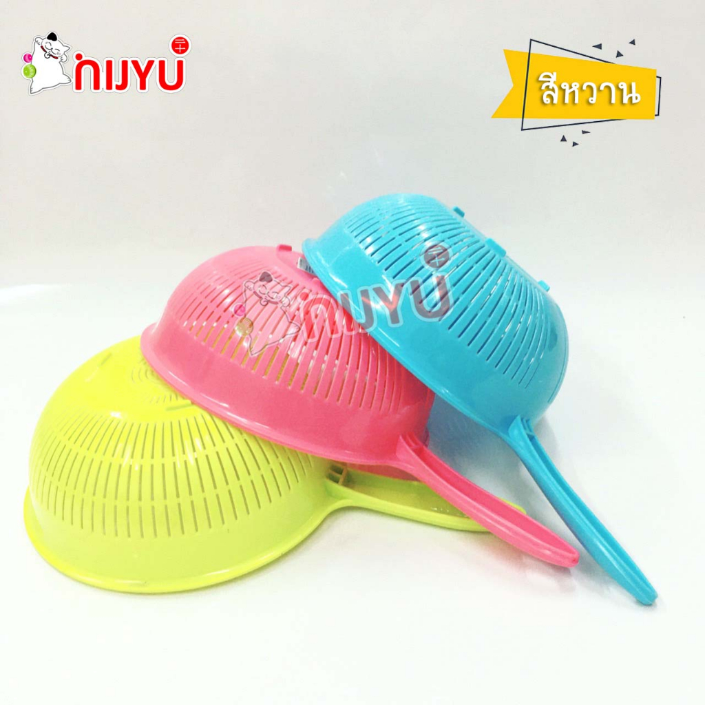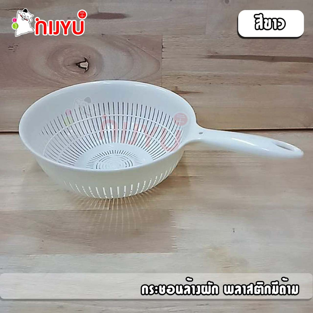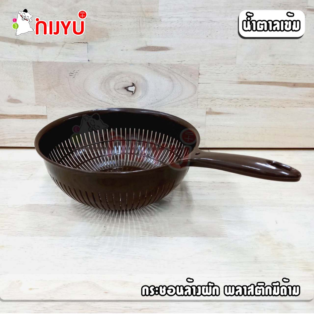 กระชอนล้างผัก กระชอนพลาสติก ตะแกรงล้างผัก กรองเศษอาหาร พลาสติก มีด้ามจับ สีเอิร์ธโทน