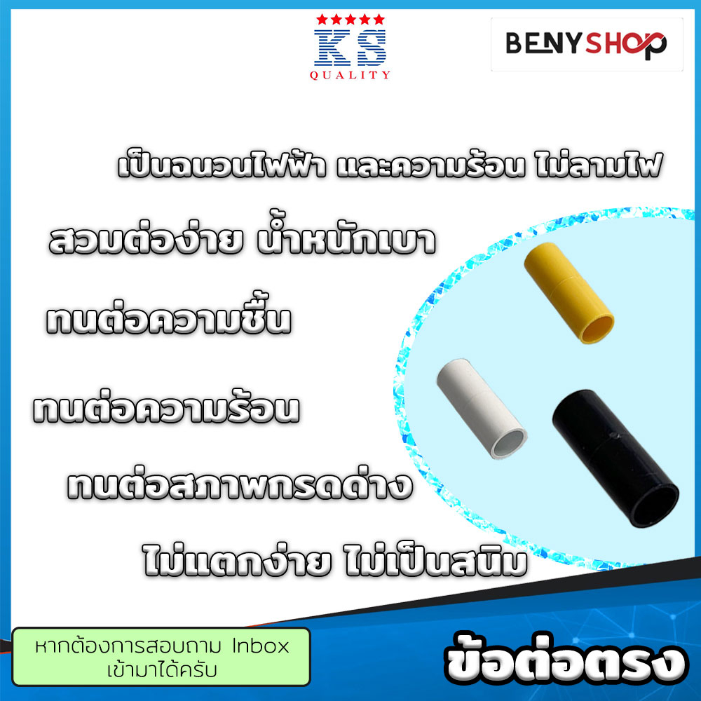 ข้อต่อตรง ขนาด 3/8"(3หุน), 1/2"(4หุน), 3/4"(6หุน) สีเหลือง ขาว ดำ ตรา KS - TS SOCKET