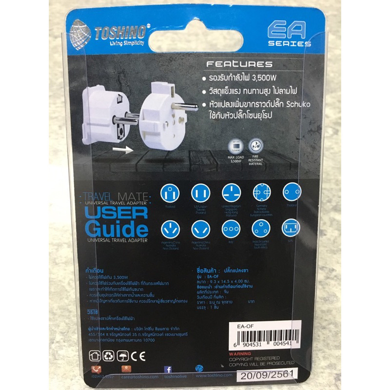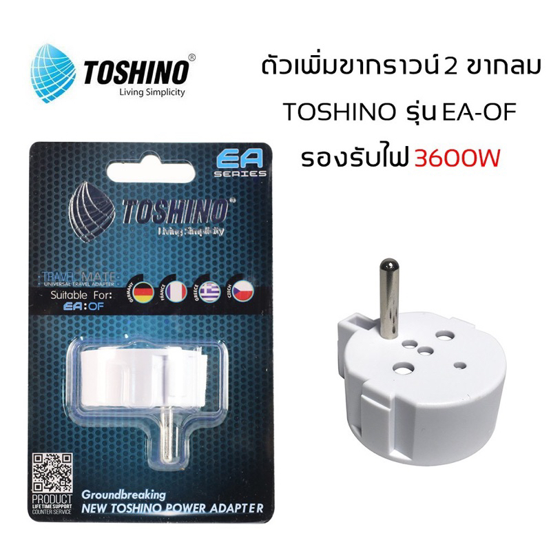 Toshino ตัวเพิ่มกราวด์ปลั๊กขากลม 2 ขา เป็น 3 ขา รุ่น EA-OF รองรับกำลังไฟ 3500W