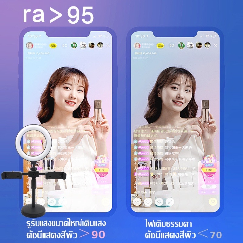 ขาตั้งไลฟ์สด ไฟวงแหวน ไฟ16CM ขาตั้งกล้องมือถือ ไฟไลฟ์สด ไฟกลม ไฟแต่งหน้า ปรับแสงได้ 3 สี