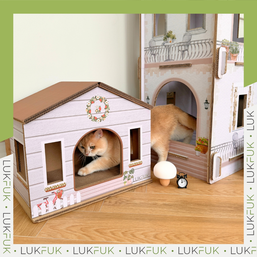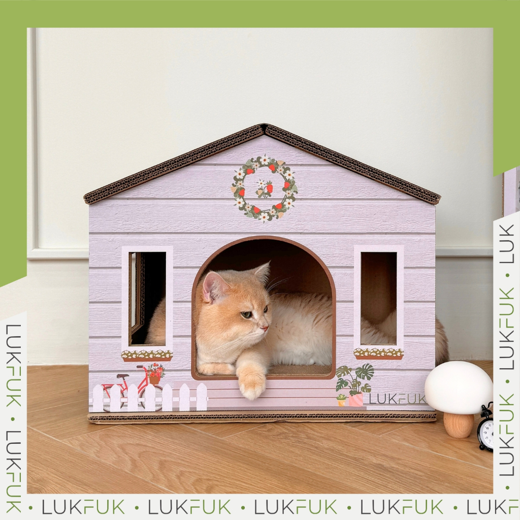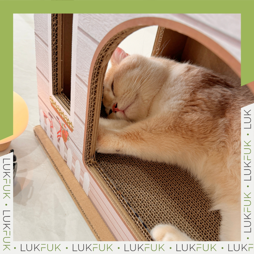 LUKFUK (ลูกฟูก) บ้านแมวและที่ลับเล็บแมวกระดาษ ขนาดใหญ่ รุ่น “บ้านแมว” (L Carton Cat Scratcher “Cat House”)