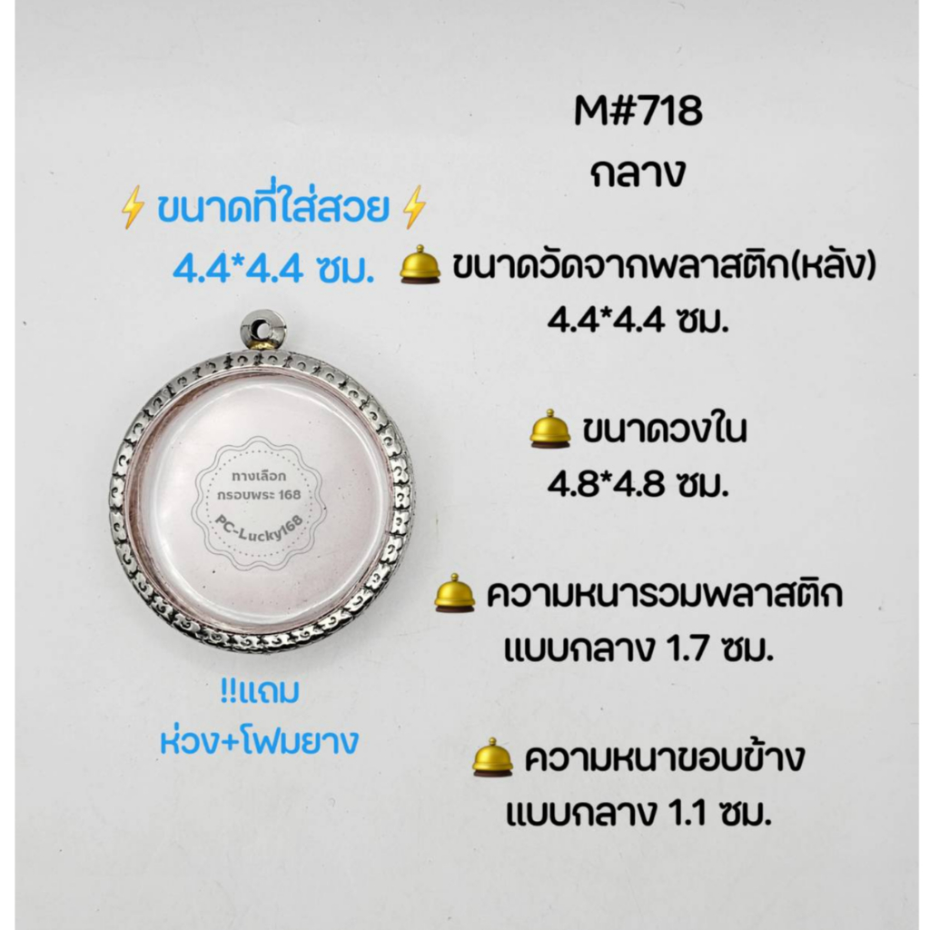 M#718 กลาง/บาง ตลับพระ/กรอบพระสเตนเลสลายไทย วงใน4.8*4.8 ซม พิมพ์กลมว่าน/เหรียญใหญ่-กลางหรือใกล้เคียง
