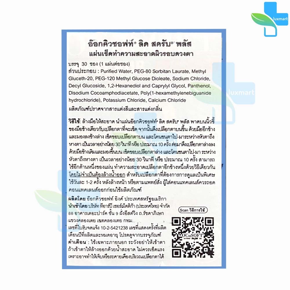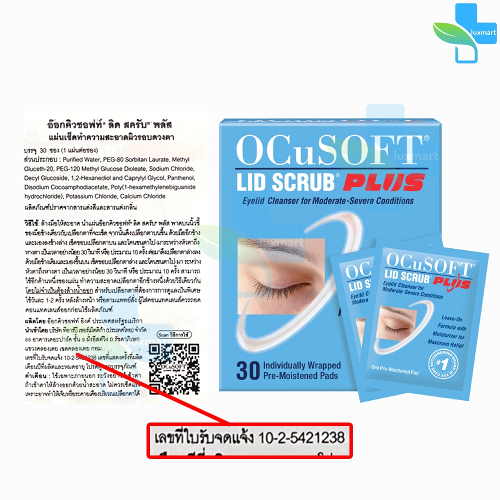 OCuSOFT Lid Scrub Plus Pad (แบ่งขาย 10 แผ่น สีฟ้า) EE 4202 แผ่นเช็ด ทำความสะอาดผิว รอบดวงตา เปลือกตา ขอบตา