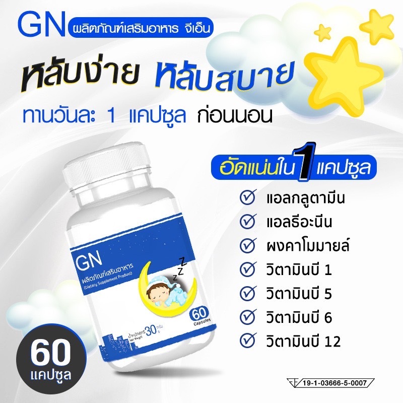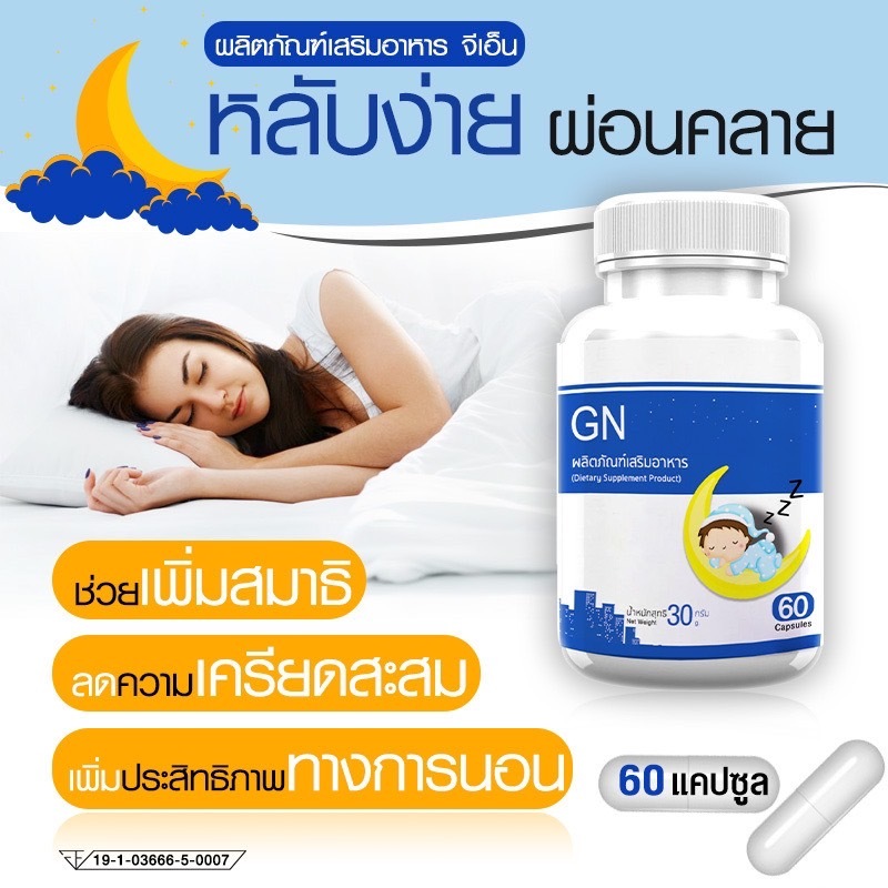 ส่งฟรี! GN ช่วยเรื่องนอนหลับ หลับลึก ตื่นบ่อย นอนน้อย ผ่อนคลาย (60 แคปซูล) 🔥รับสินค้า 1-2 วัน🔥