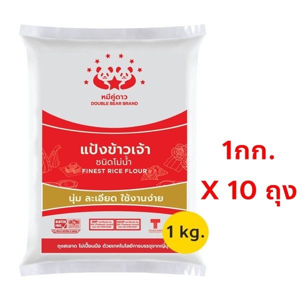 ยกกระสอบ !! แป้งข้าวเหนียว แป้งข้าวเจ้า แป้งมันสำปะหลัง ตราหมีคู่ดาว 1กก.x10ถุง Exp2027
