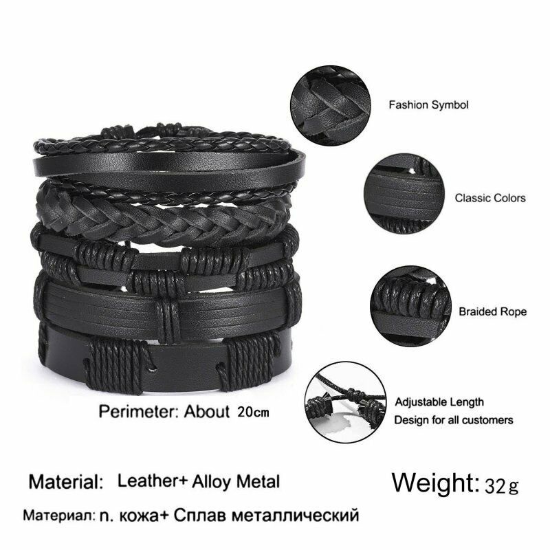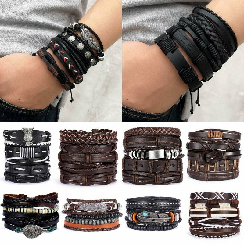 1/3/4/5/6 ชิ้น 1 ชุด รวมกัน สร้อยข้อมือ ผู้ชาย พังก์ หนัง ลูกปัด ใบไม้ ถัก สายรัดข้อมือ กําไลข้อมือ สร้อยข้อมือ ขายส่ง