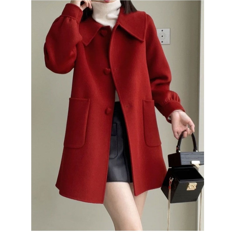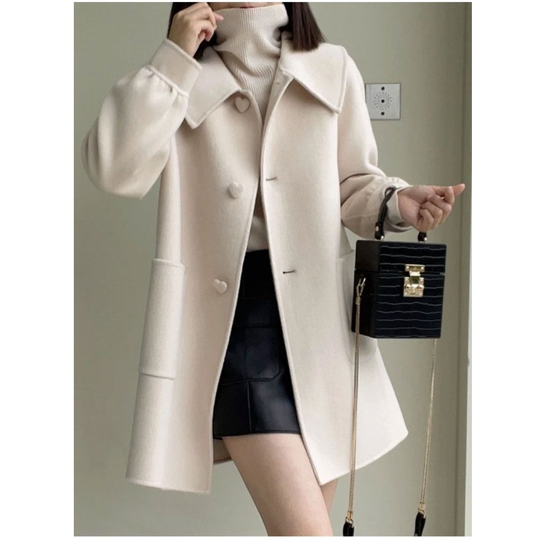 (หกสี) ฤดูใบไม้ร่วงและฤดูหนาว ใหม่ ความยาวปานกลาง ปุ่มความรัก ผ้าฟลีซ เกาหลี ฉบับเสื้อโค้ท สําหรับผู้หญิง ลดอายุ คอตุ๊กตา บาง