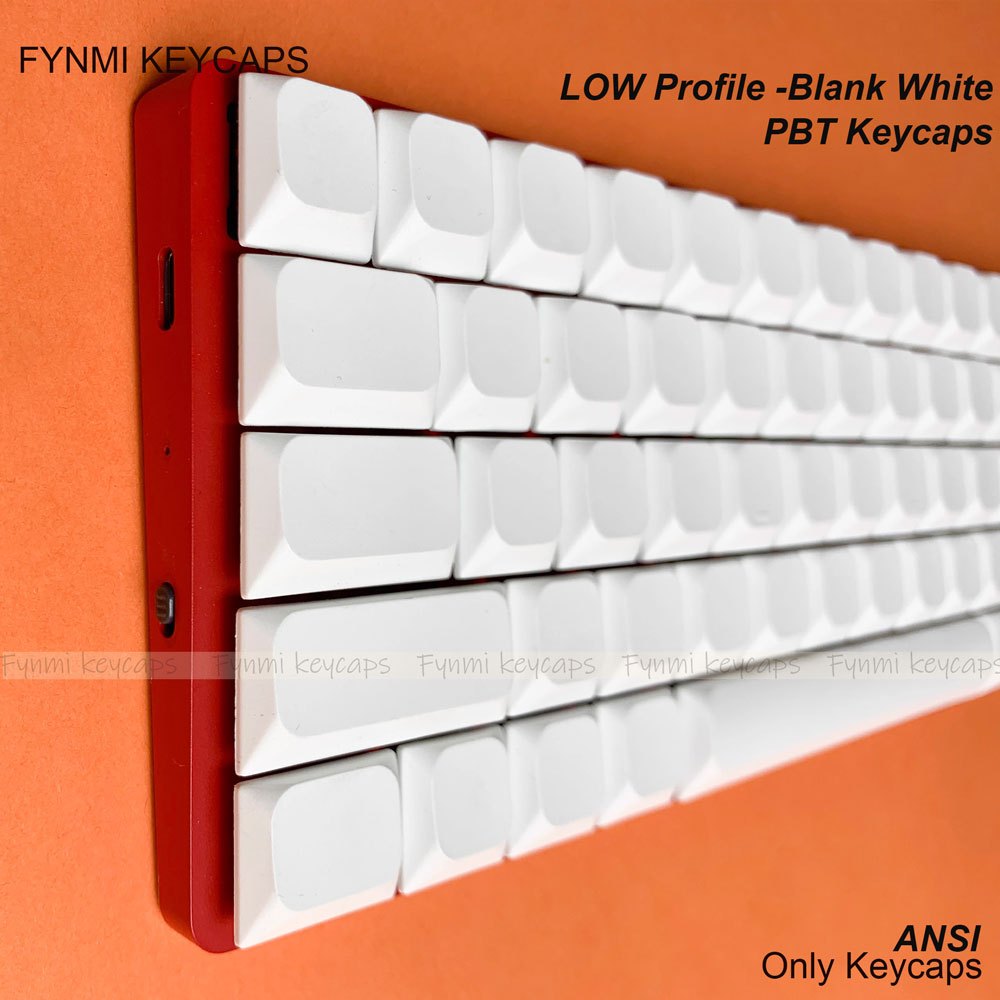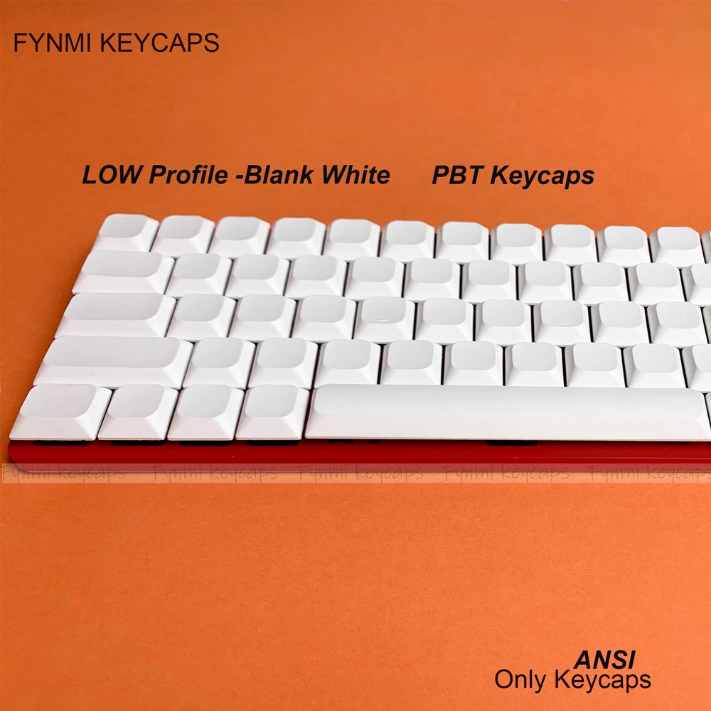 Fynmi Low Profile Blank White PBT keycaps ANSI 61 คีย์ถึง 120 คีย์ Dye-Sublimation keycaps