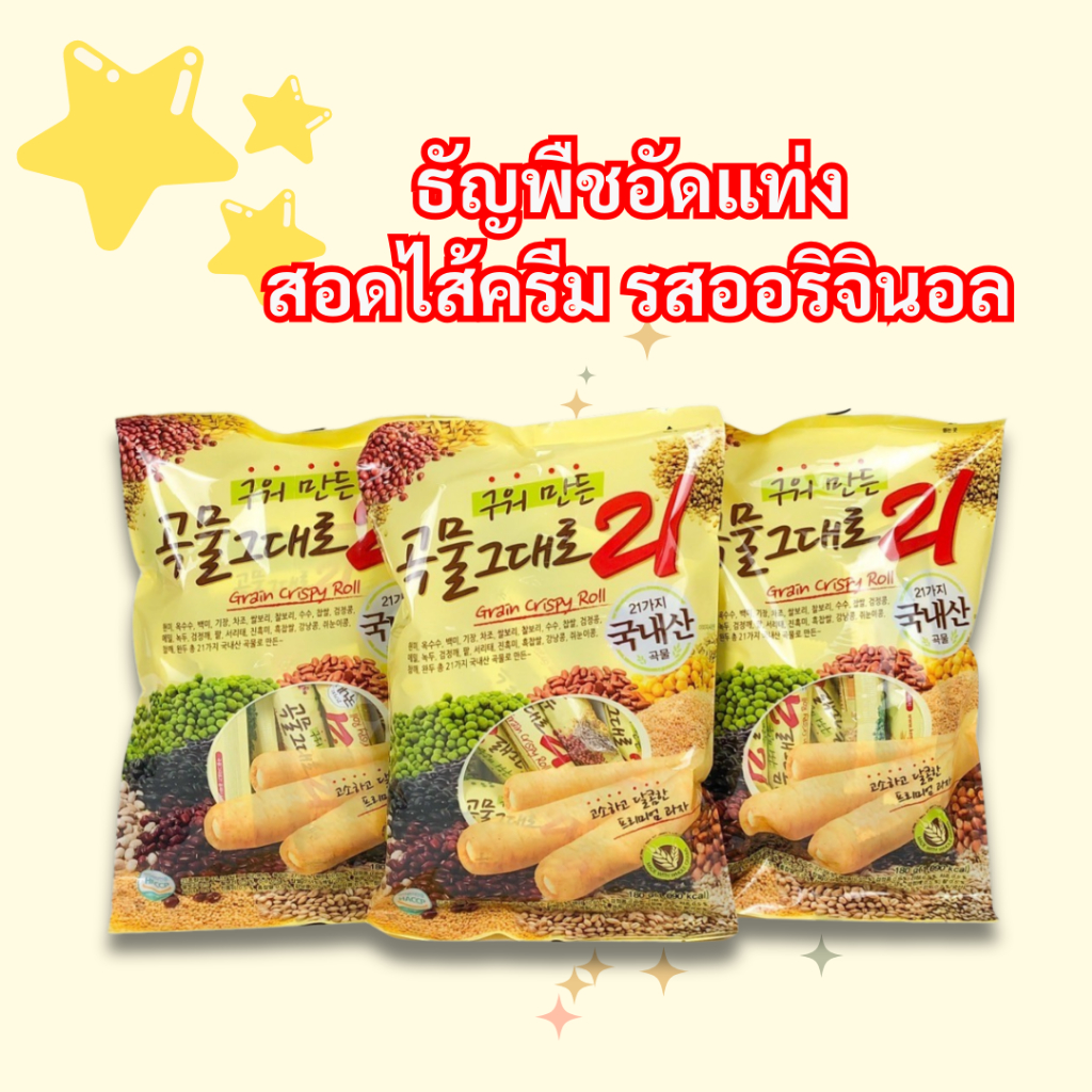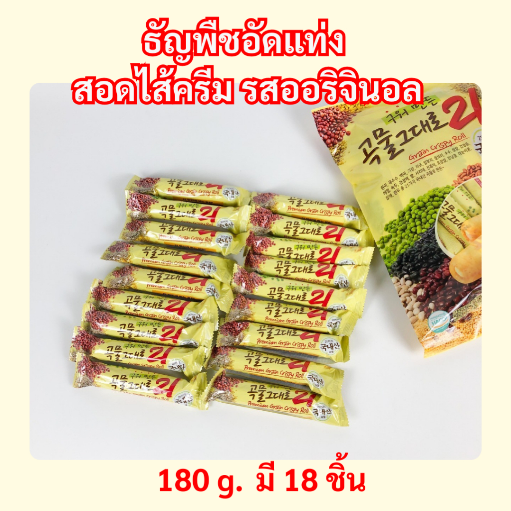 GRAIN CRISPY ROLL 180g คริสปี้โรล รสออริจินัล ธัญพืชแท่งสอดไส้ครีม ชีส ขนมเกาหลี 곡물 그대로