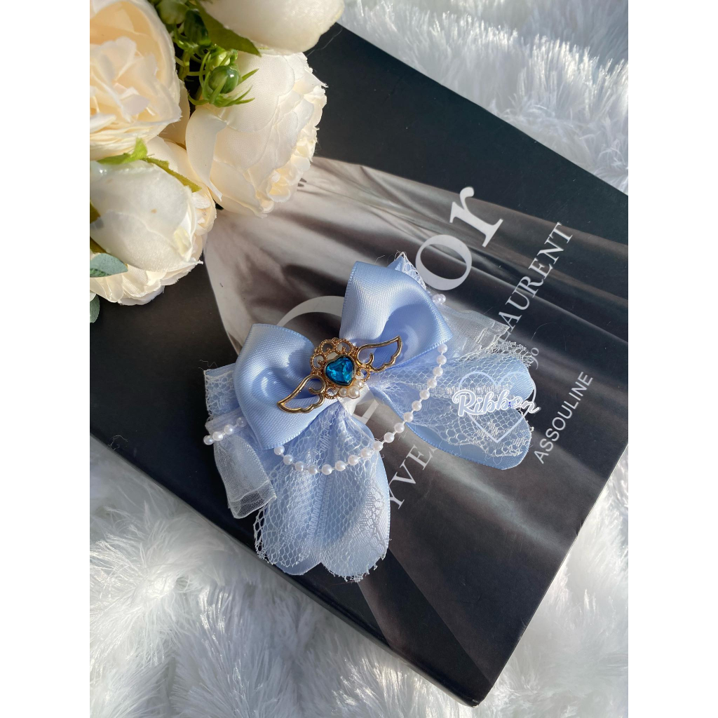 โบว์ติดเเท่งไฟ โบว์ติดผม2ชั้น รุ่นMini ติดไมค์ เเละติดคอเสื้อได้ งานเเฮนด์เมด