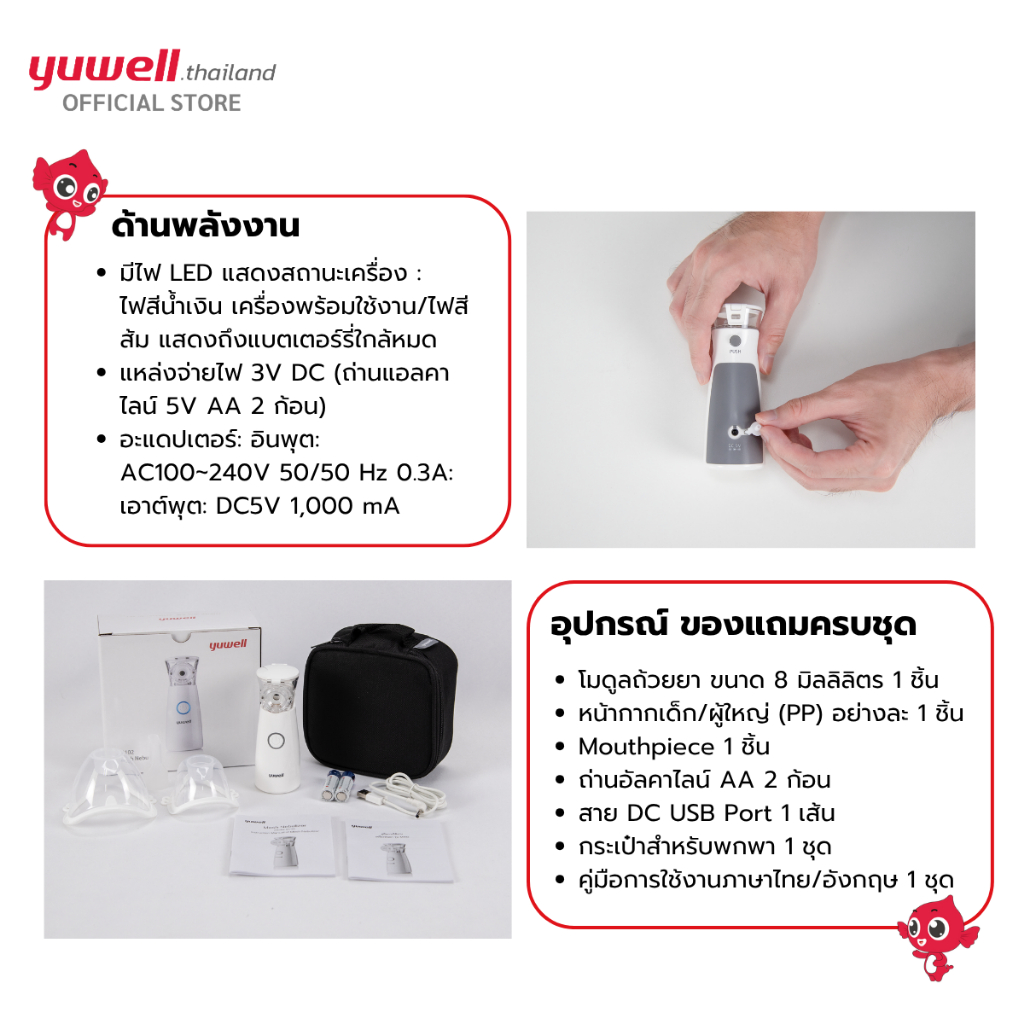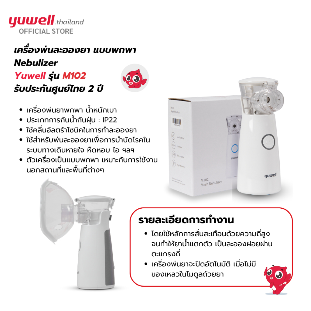 เครื่องพ่นละอองยาแบบพกพา Yuwell รุ่น M102 รับประกันศูนย์ไทย 2 ปี
