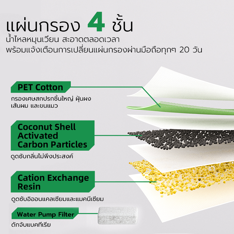 แผ่นกรอง ฟิลเตอร์ และฟองน้ำปั๊ม น้ำพุสัตว์เลี้ยง NOTTY 1.7 ลิตร
