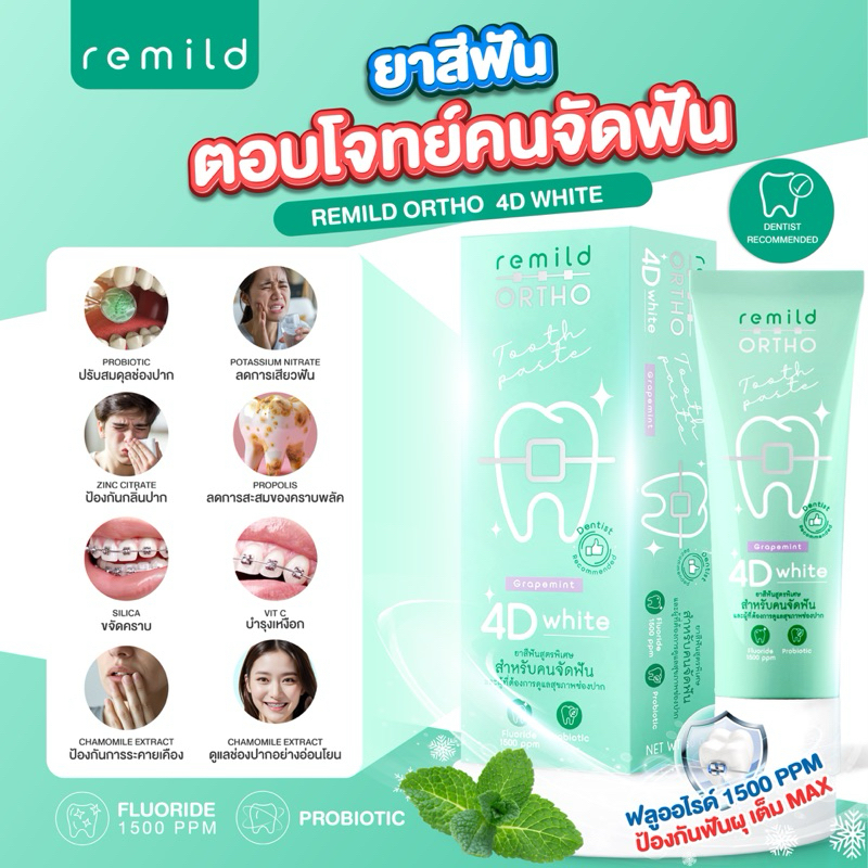 ยาสีฟัน Remild ortho แพค 3 หลอด แถมฟรี แปรงจัดฟัน รุ่น Duo 1 ชิ้น (คละสีให้)
