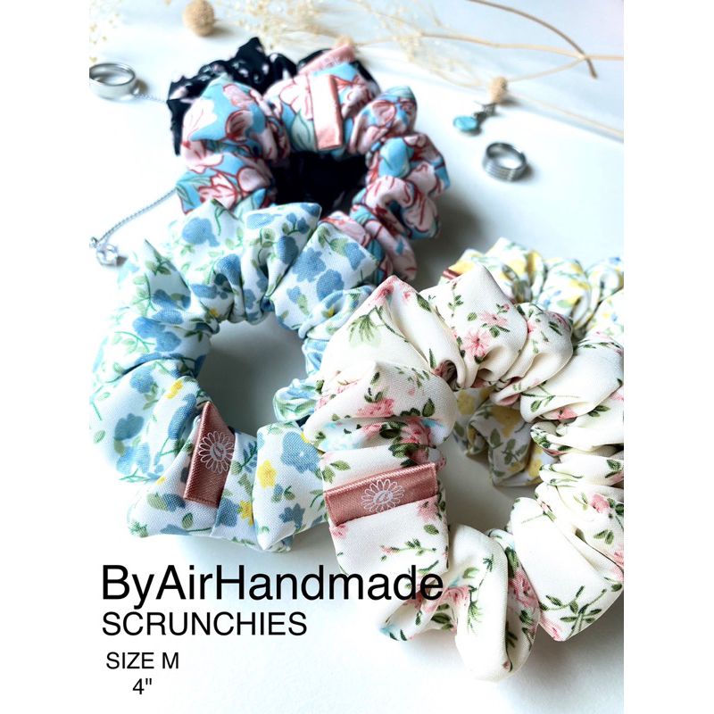 ที่รัดผมทรงโดนัท ลายดอก น่ารัก ขนาดกลาง(M) 4" SCRUNCHIES