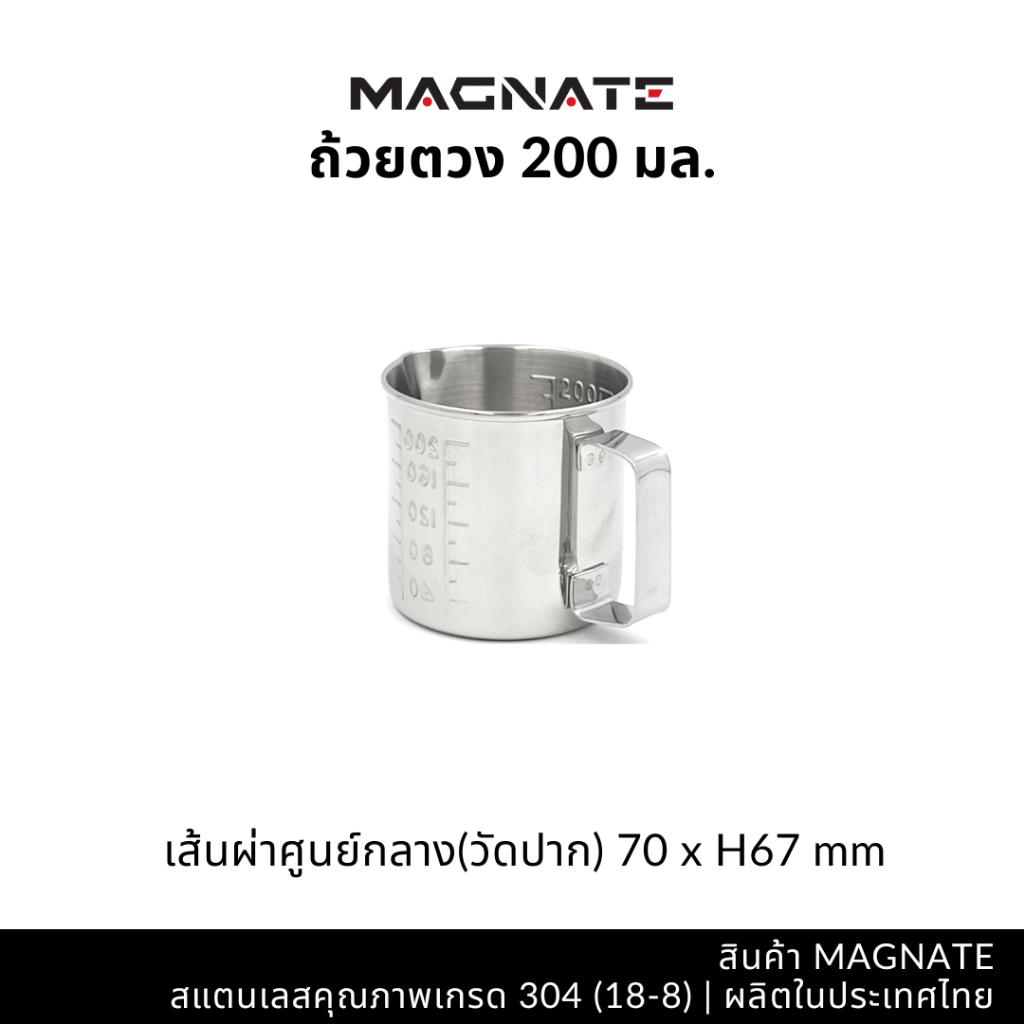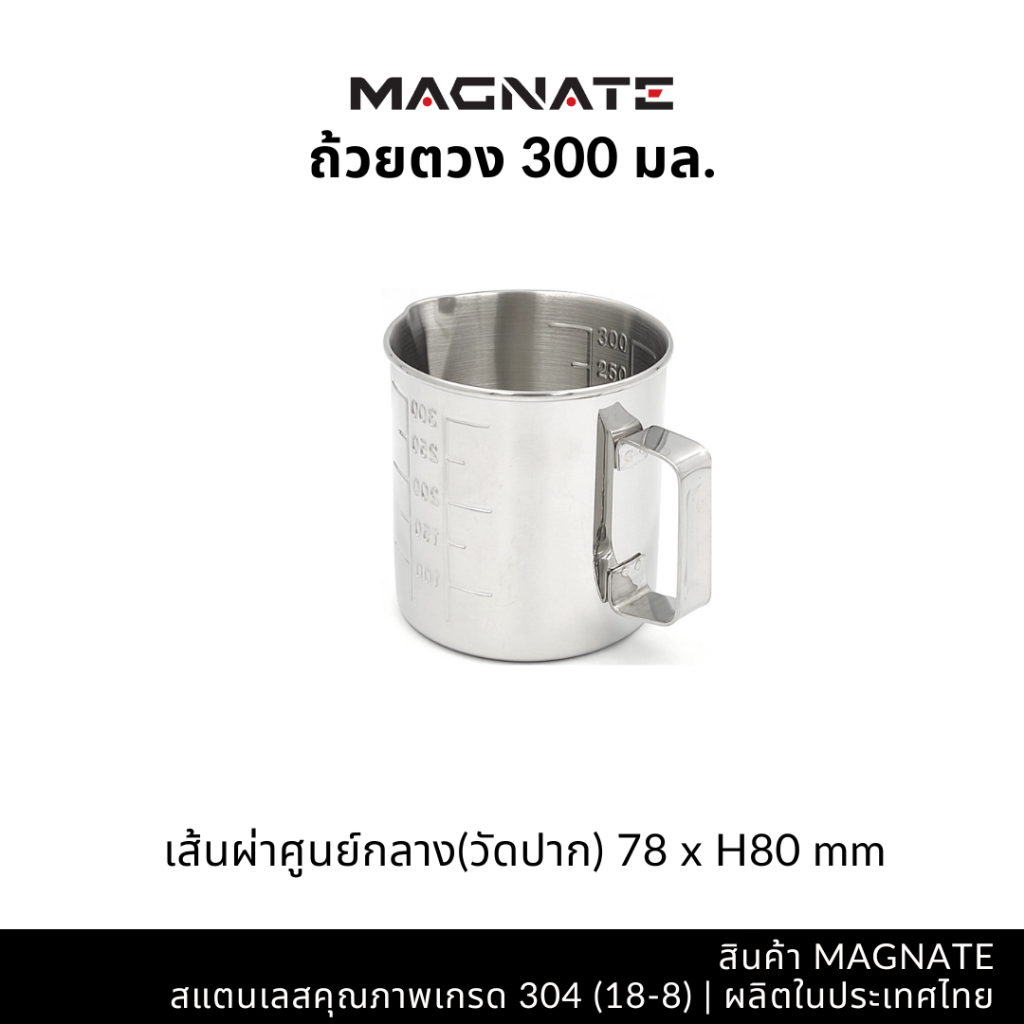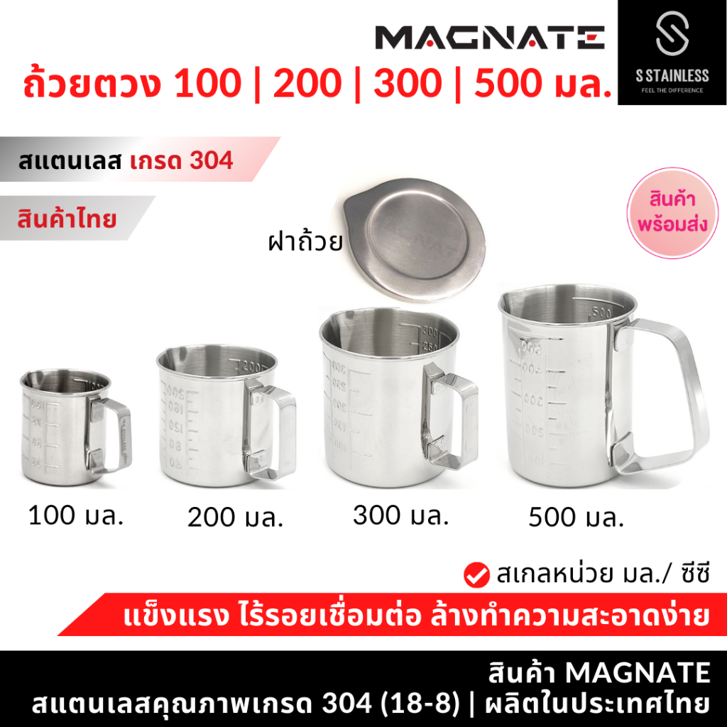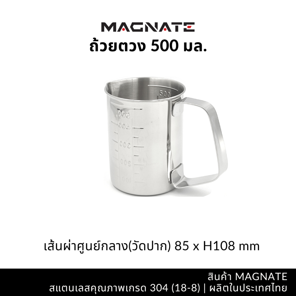 MAGNATE ถ้วยตวงสแตนเลส 100 , 200 , 300 , 500 มล. (cc.) กระบอกตวง แก้วตวง บีกเกอร์ เหยือกตีฟองนม