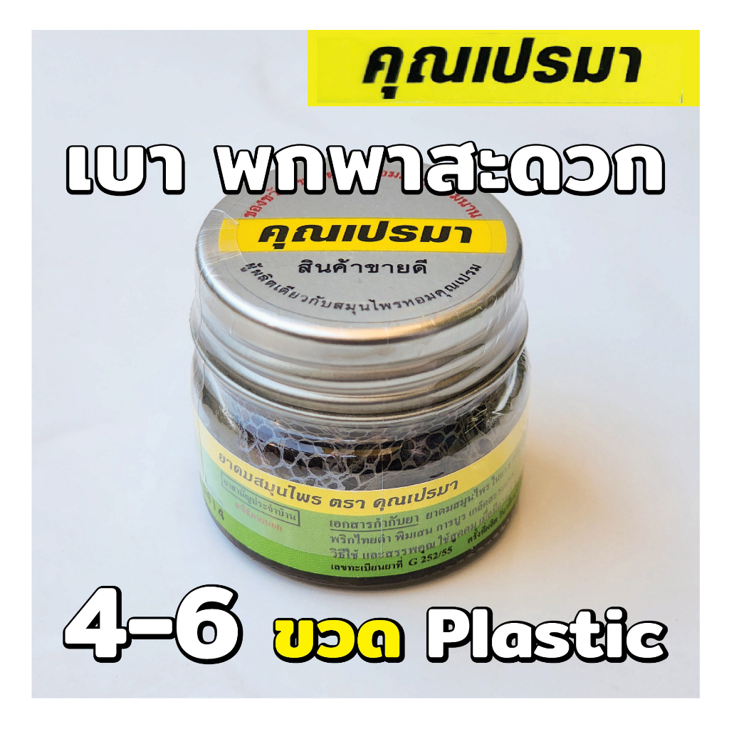 ยาดมสมุนไพรคุณเปรมา 4-6 ขวดพลาสติก เบาพกพาสะดวก กลิ่นหอมสดชื่นสมุนไพร