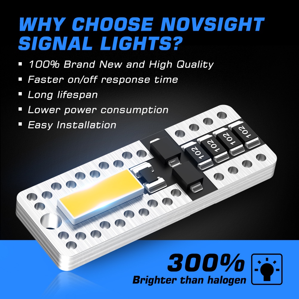 Novsight T10 หลอดไฟอ่านหนังสือ LED 7020 ชิป 6000K ความสว่างสูง สําหรับติดภายในรถยนต์ 2 ชิ้น