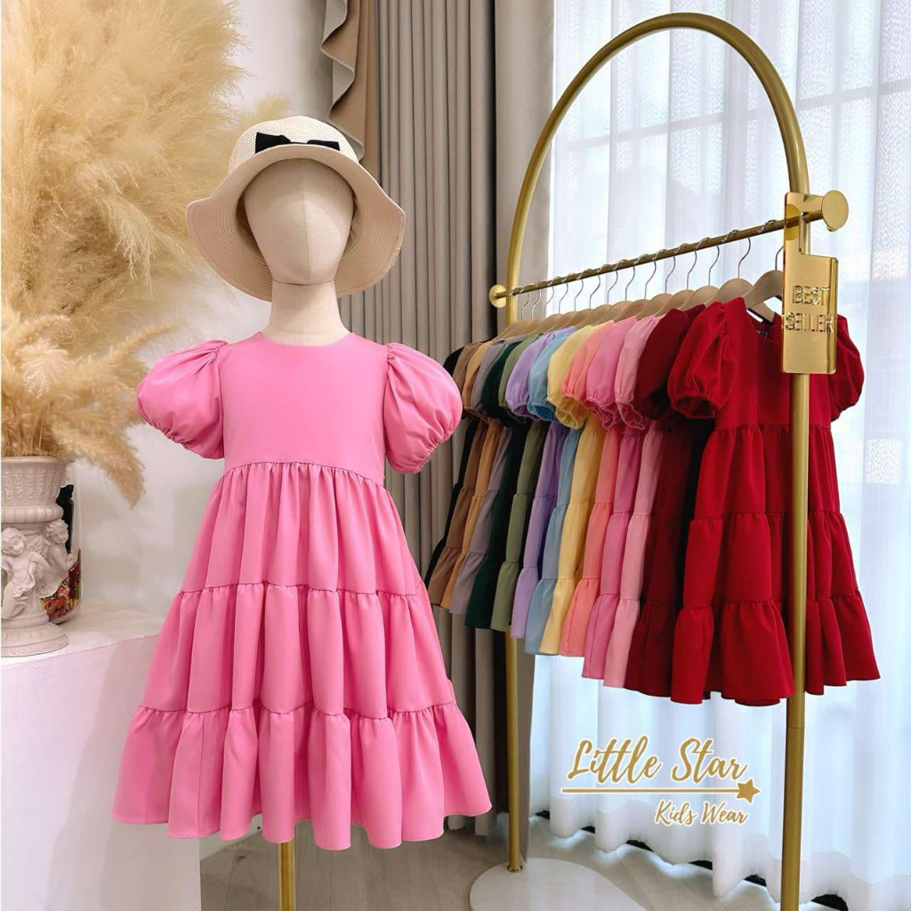 ⭐️Littlestar👧🏻เดรสกระโปรงยาว3ชั้นแขนตุ๊กตา ผ้าไหมอิตาลี ใส่สวย มี17สี GMP0608 (2XL,3XL) รุ่นนี้มี2ตะกร้านะคะ