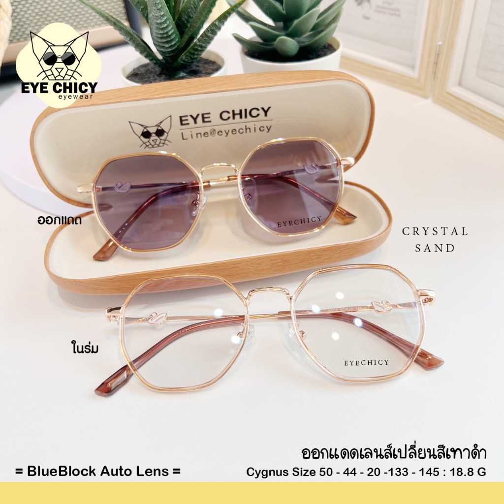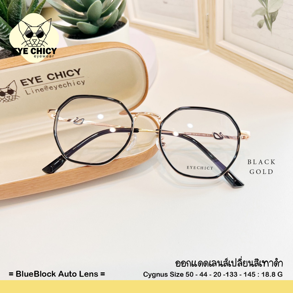 แว่นกรองแสงบลูบล็อก+ออโต้ กรองแสงสีฟ้า (Blueblock+Auto) รุ่น 240608 EYECHICY ออกแดดเลนส์เปลี่ยนสี แว่นกรองแสงคอม