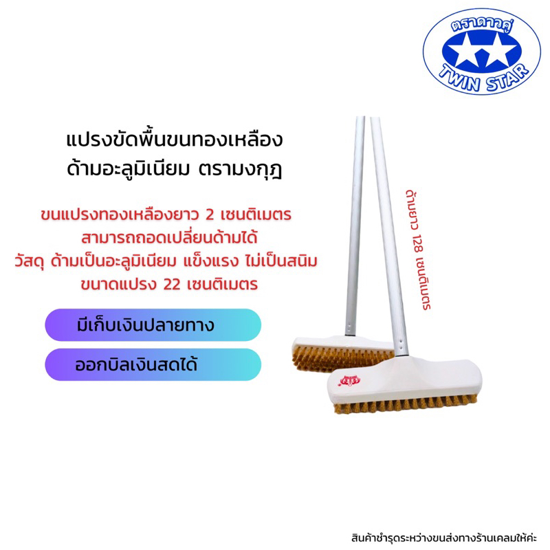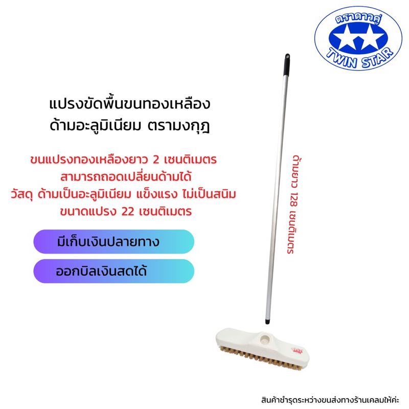(ด้ามอลูมิเนียม128cm.150cm.) แปรงขัดพื้นขนทองเหลือง