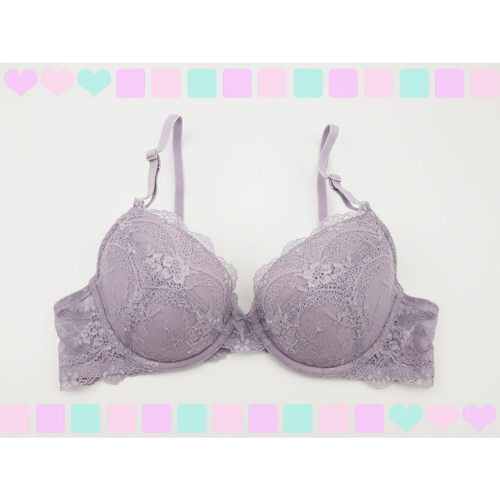 (ซื้อ 2 แถม 1 - ตัวแถมแจ้ง สี-ไซส์ ในห้องแชท) รุ่น I-1535 สีม่วงตุ่น ทรง 3/4 คัพ ฟองน้ำบาง มีโครงเหล็ก ลูกไม้ทั้งตัว