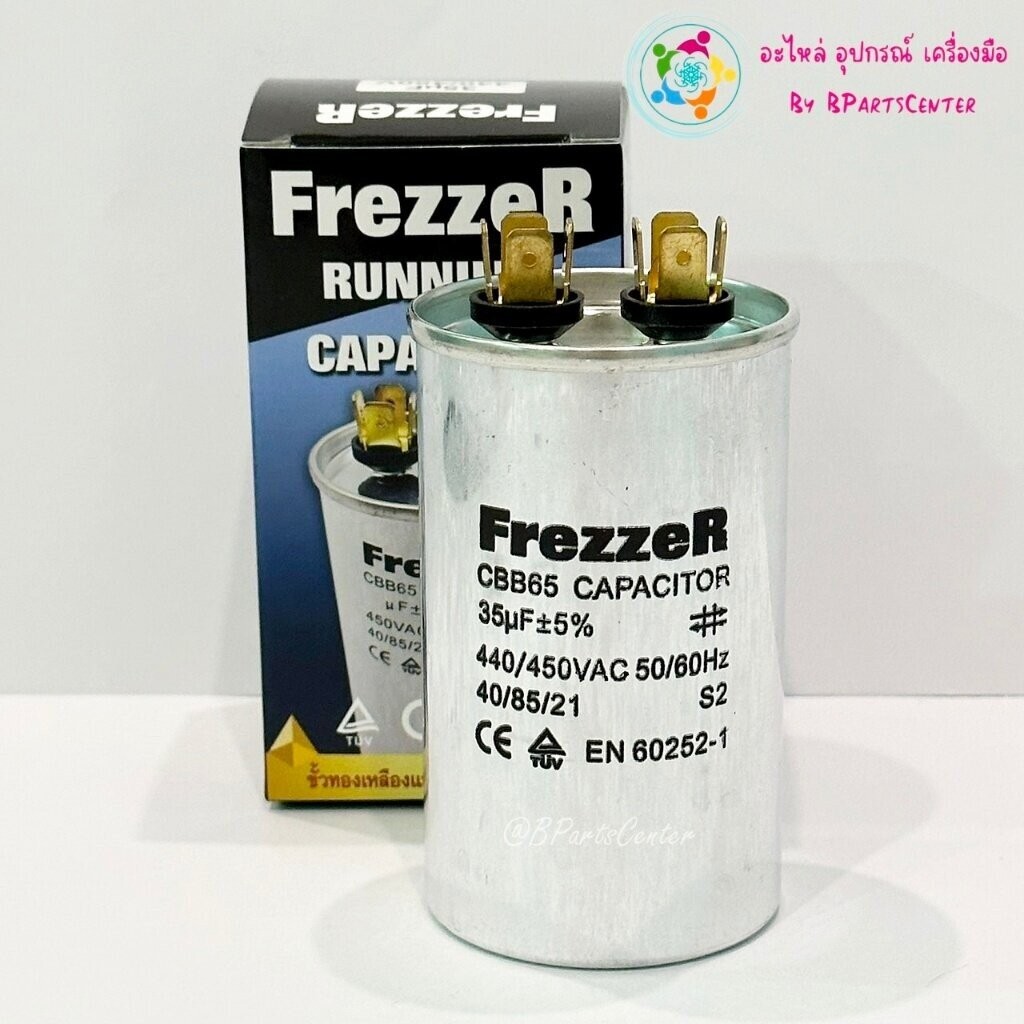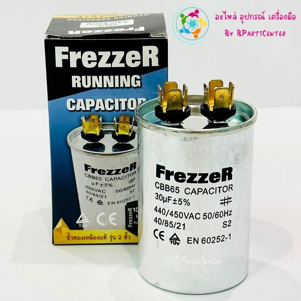 *** ออกใบกำกับภาษีได้ *** FrezzeR Capacitor แคปรันแอร์ขั้วทองเหลือง 2 ขั้ว ค่า 20/25/30/35/40/45/50/55/60/70 UF
