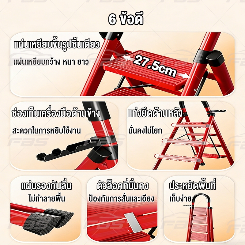 FBS บันไดพับได้ รับน้ำหนักได้ 300KG (2ชั้น 4ชั้น 5ชั้น 6ชั้น 7ชั้น) อลูมิเนียม บันได พับได้ แดง / ดำ / ขาว Folding stair