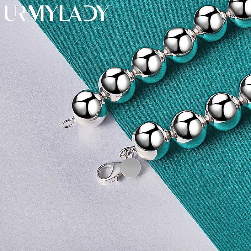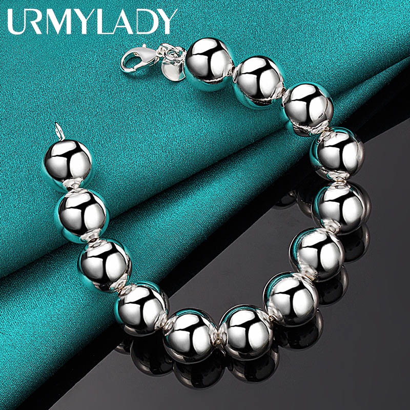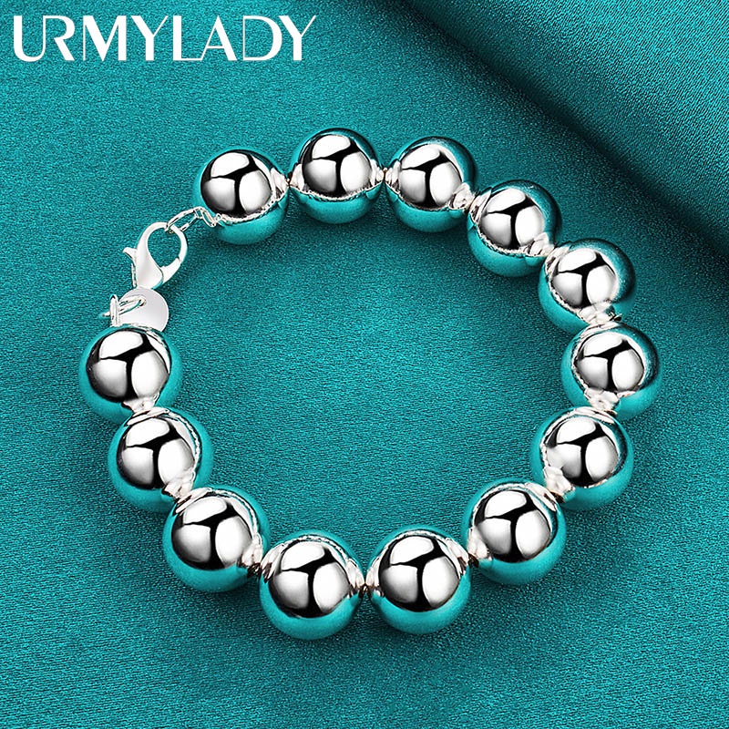 สร้อยข้อมือเงินแท้ เกรด 925 ประดับลูกปัดกลวง ทรงกลม ขนาด 14 มม. เหมาะกับงานแต่งงาน สําหรับผู้ชาย และผู้หญิง