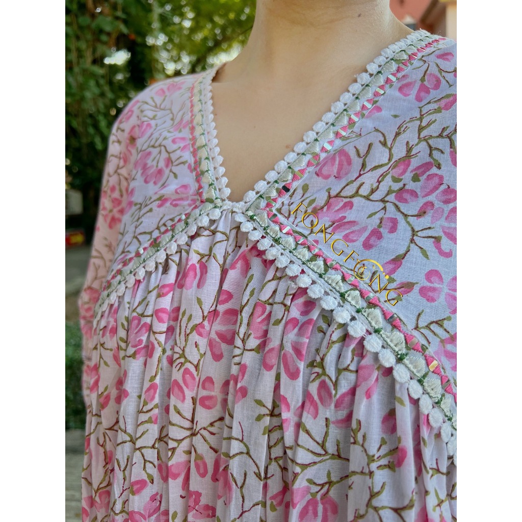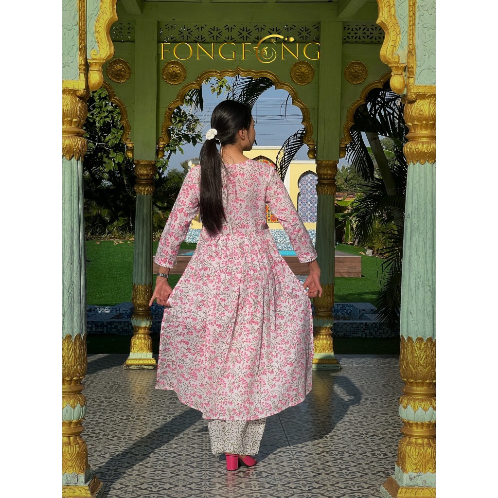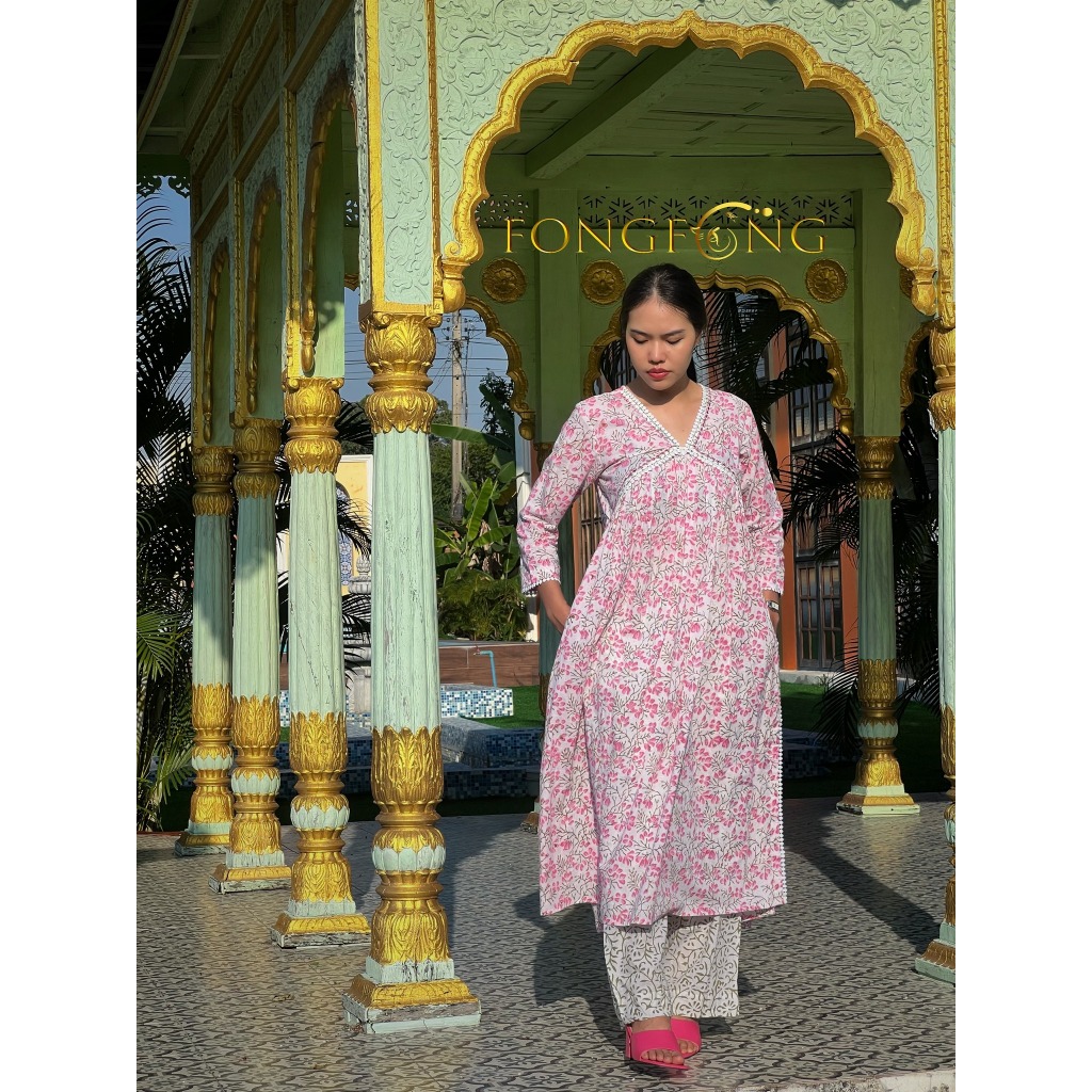 มี #พลัสไซส์ ชุดอินเดียพร้อมผ้าคลุม HAND BLOCK PRINT Pure Cotton Kurti with Trousers