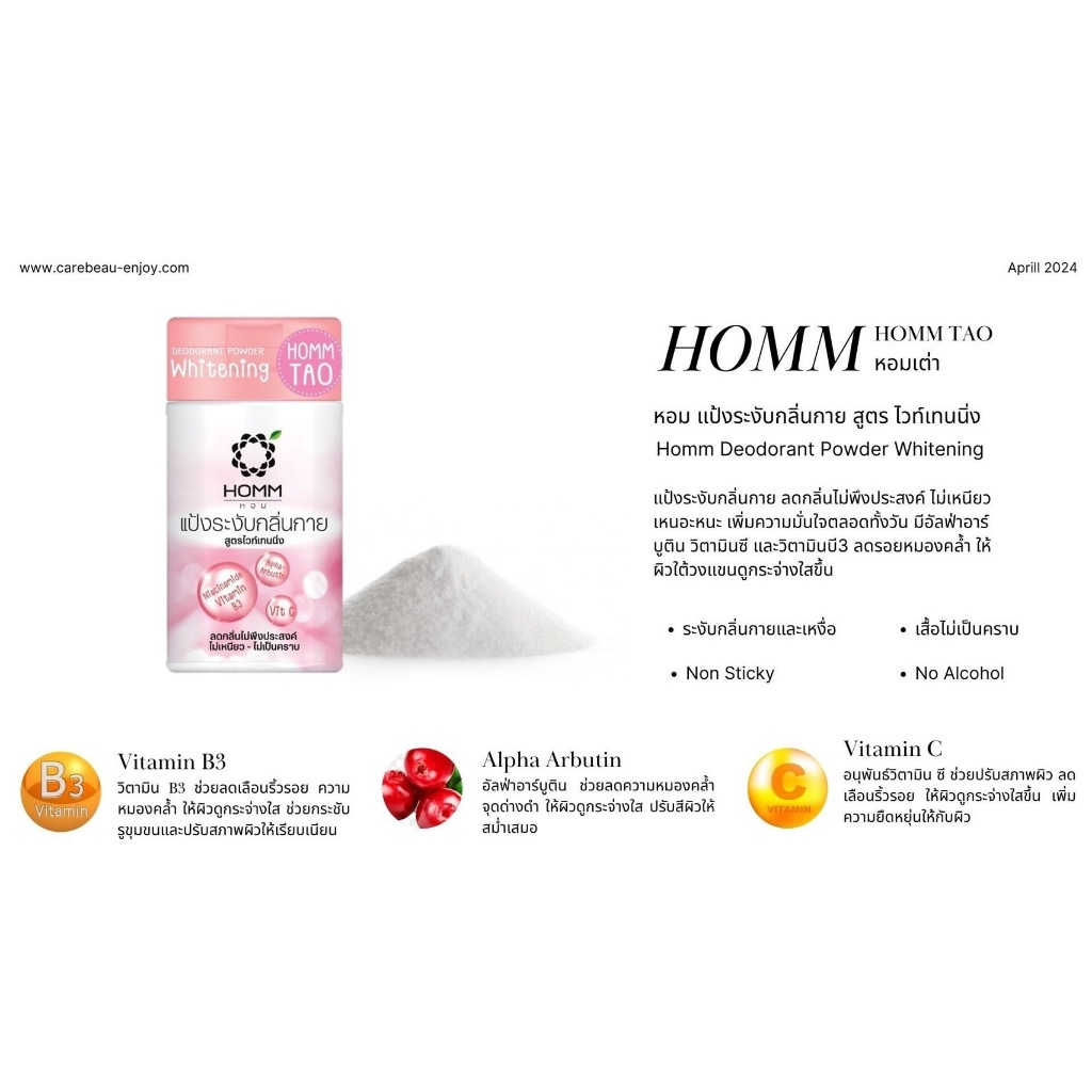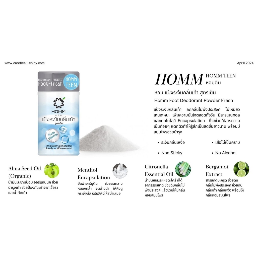 Hommแป้งระงับกลิ่นกาย มีให้เลือก2สูตร