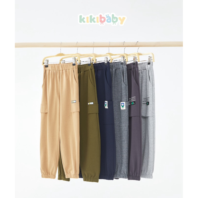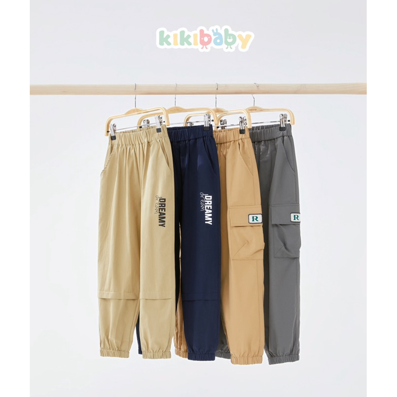 [130-160] กางเกงคาร์โก้ ขาตรงทรงหลวม Cargo กระเป๋า2ใบ เอวสูง สไตล์วินเทจ ผ้าร่ม สไตล์เกาหลี เอวยืด สายรัด KKL