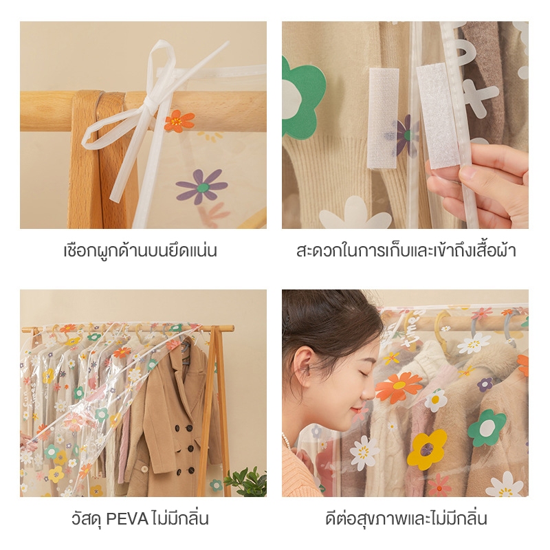 ถุงคลุมเสื้อผ้า ถุงคลุมเสื้อผ้ากันฝุ่น ผ้าคลุมราวกันฝุ่น วัสดุ PEVA