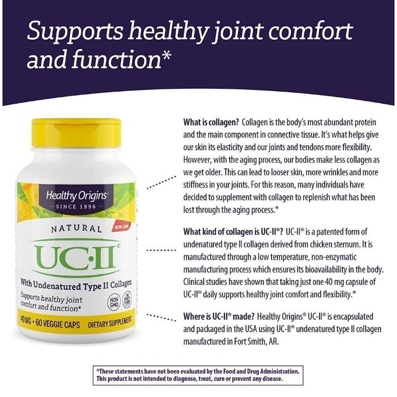 ✨️พร้อมส่ง✨️Healthy Origins UC-II (Undenatured Type II Collagen) 40 mg, (60 & 120 Caps)