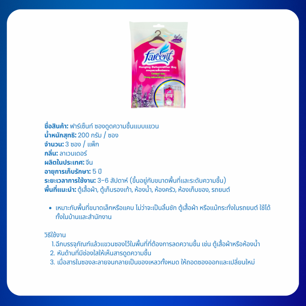 ฟาร์เซ็นท์ ซองดูดความชื้นชนิดแขวน กลิ่นลาเวนเดอร์ 200 ก.