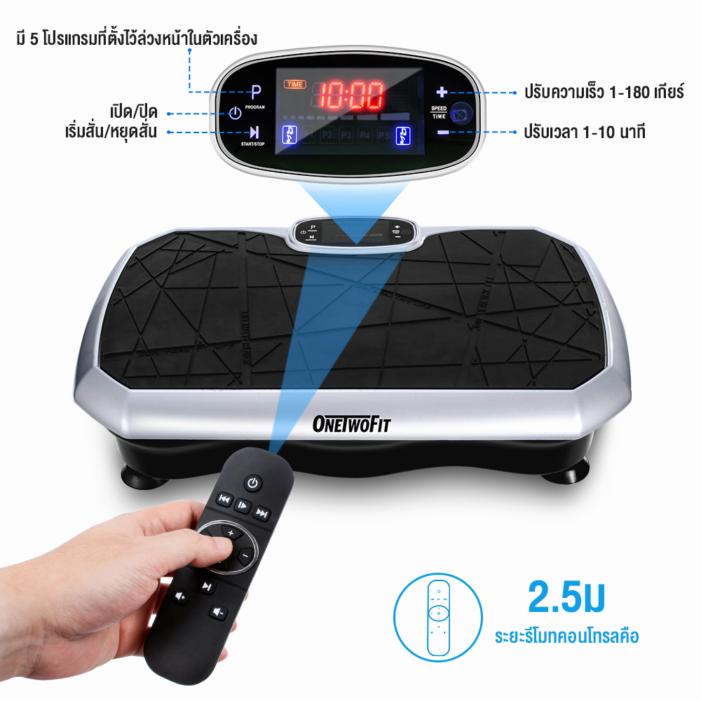 OneTwoFit เครื่องสั่นสลายไขมัน เครื่องสั่นออกกำลังกาย ปรับได้ 180 ระดับ ลดหน้าท้อง กระชับสัดส่วน พร้อมรีโมทควบคุม รองรับบลูทูธ เล่นเพลง