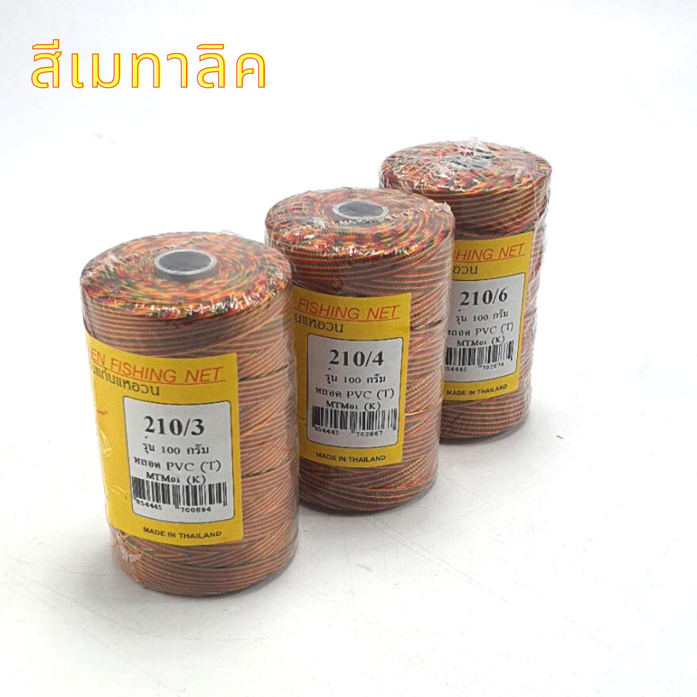 ด้ายสานแห ด้ายไนล่อน สีรวมสีผสม ตราเรือใบ ด้ายสานแห เชือกไนล่อน ไนล่อน รุ่น 210 น้ำหนัก 100 กรัม
