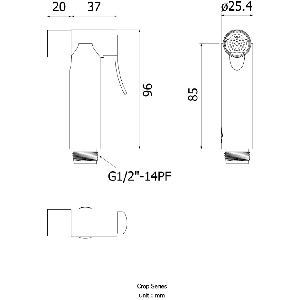 FXHOY-0041WS หัวฉีดชำระพลาสติก ก้านกด และปากกรองสเตนเลส ( เฉพาะหัว ) รุ่น CROP