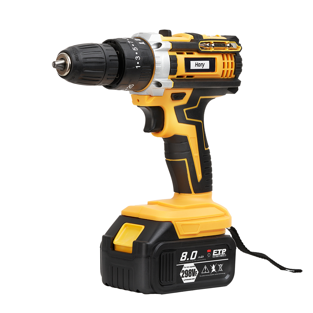 HORY สว่านไร้สาย สว่าน 298V 3 ระบบ มีระบบกระแทก แบตเตอรี่ 2 ก้อน เครื่องมือช่าง รวม 28ชิ้น รองรับงานหนัก รุ่นสีเหลือง