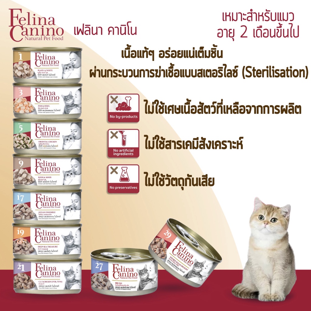 Felina Canino Single Protein [6 หรือ 12 กระป๋อง] อาหารเปียกแมว เนื้อเน้นๆ ไม่เติมเกลือ ขนาด 70 กรัม
