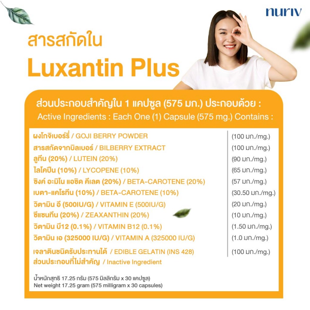 [3 กระปุก] Nuriv Luxantin Plus นูรีฟ ลูแซนทิน พลัส 30 แคปซูล วิตามินบำรุงสายตา