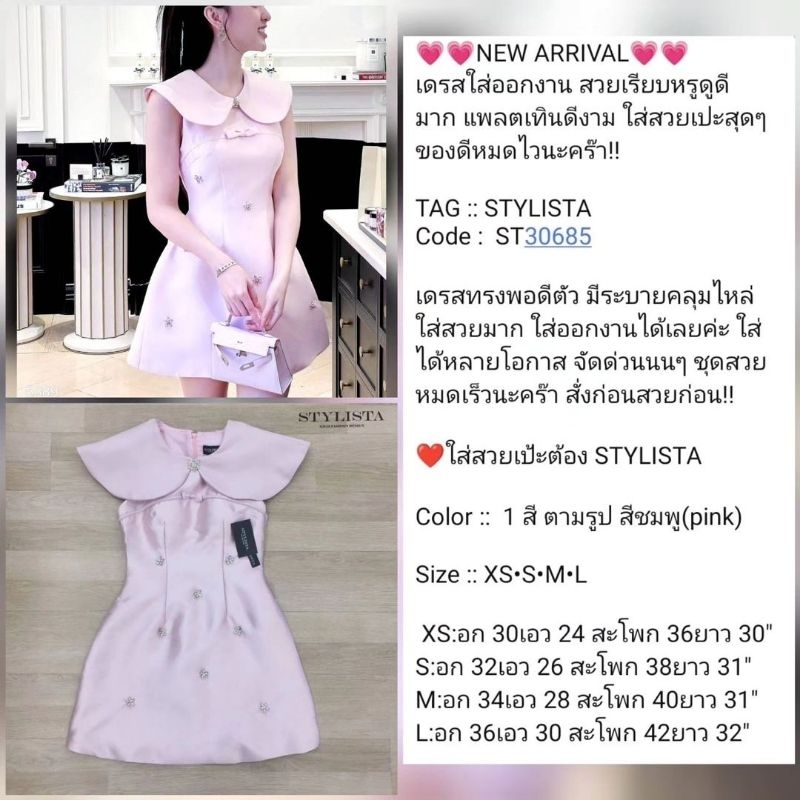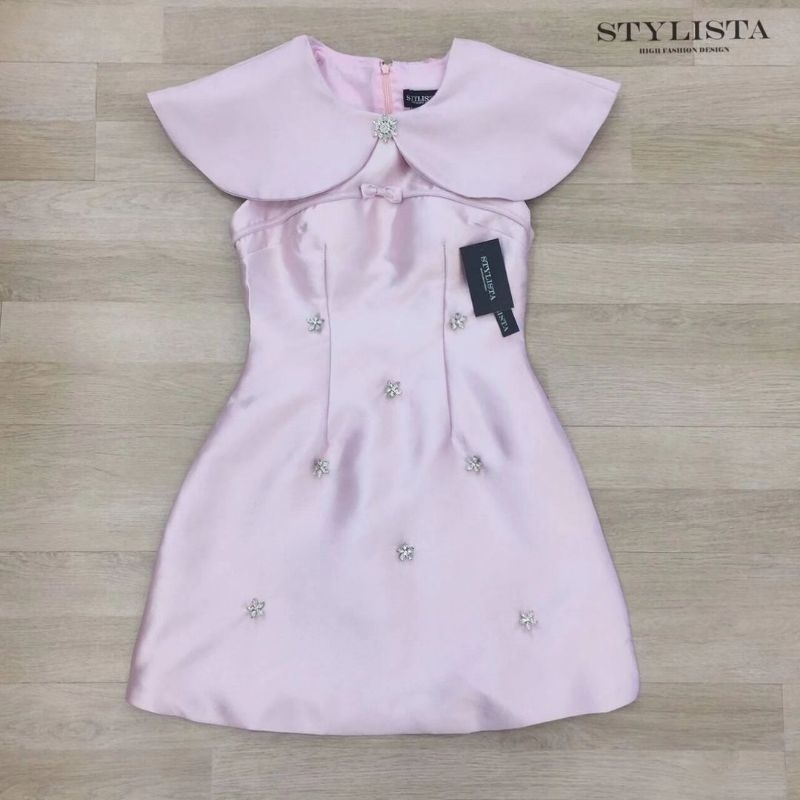Stylista แท้💯ตรงปก✨ร้านนี้มีพร้อมส่งเลย✅ไม่ต้องเช็ค*ส่งไว💐เดรสสั้น ปกใหญ่ คลุมบ่า แต่งเพชร หรู คุณภาพดี ชุดออกงานสี ชมพู