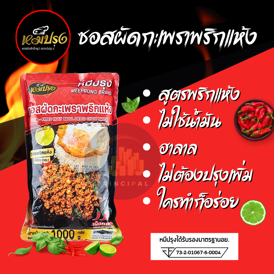 ซอสผัดกะเพราตราหมีปรุง สูตรพริกแห้งโบราณ ขนาด 1 กิโลกรัม x2 ถุง