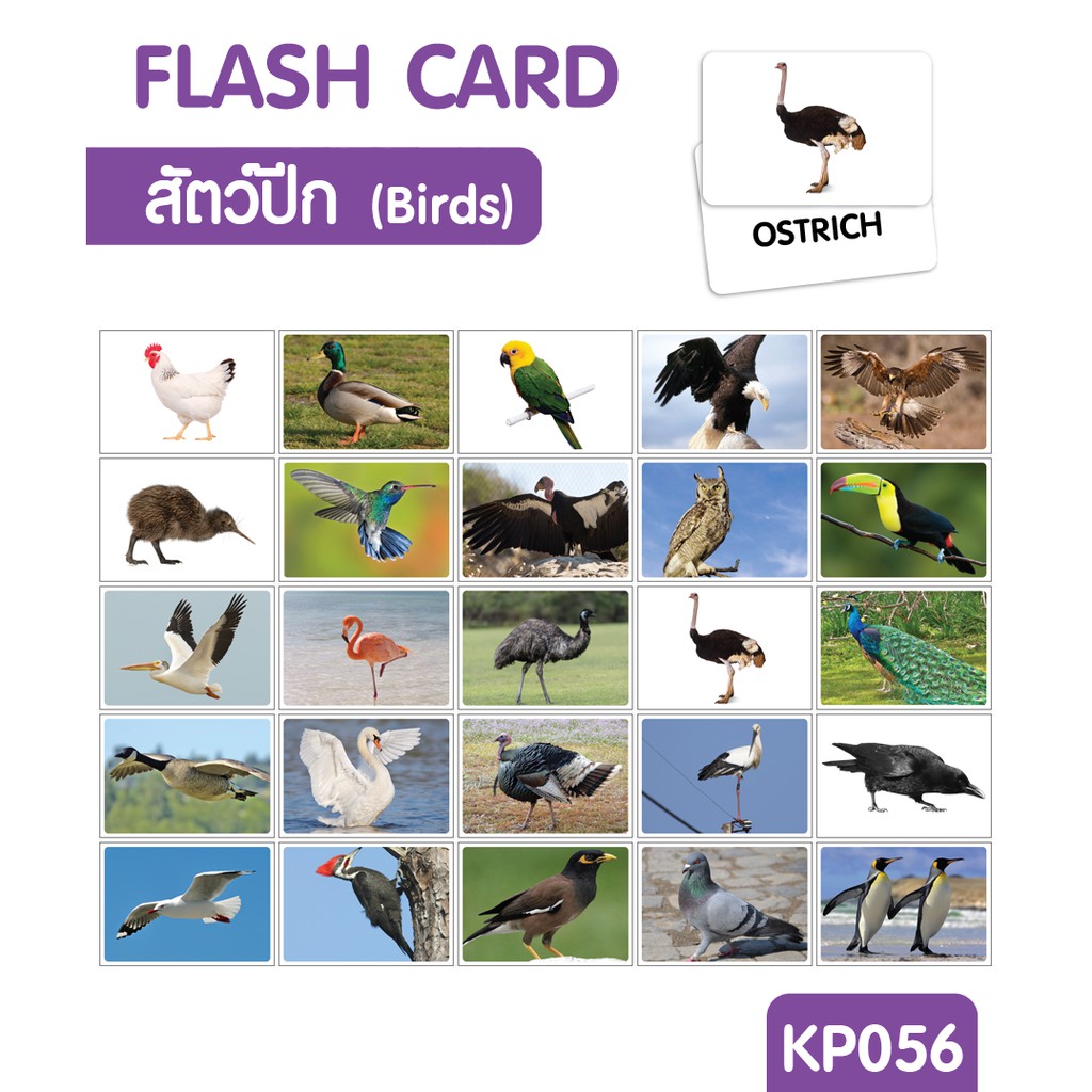 flashcard แฟลชการ์ด บัตรคำศัพท์ใหญ่ [ หมวดสัตว์ปีก Birds ]
